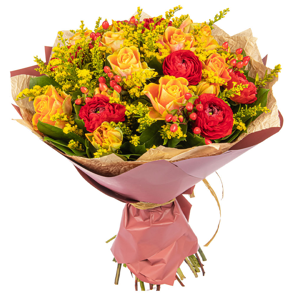 На фото представлен образец. Объем букета зависит от выбранного вами размера. Точное количество цветов и цветовую гамму вы можете уточнить у менеджера по телефону.