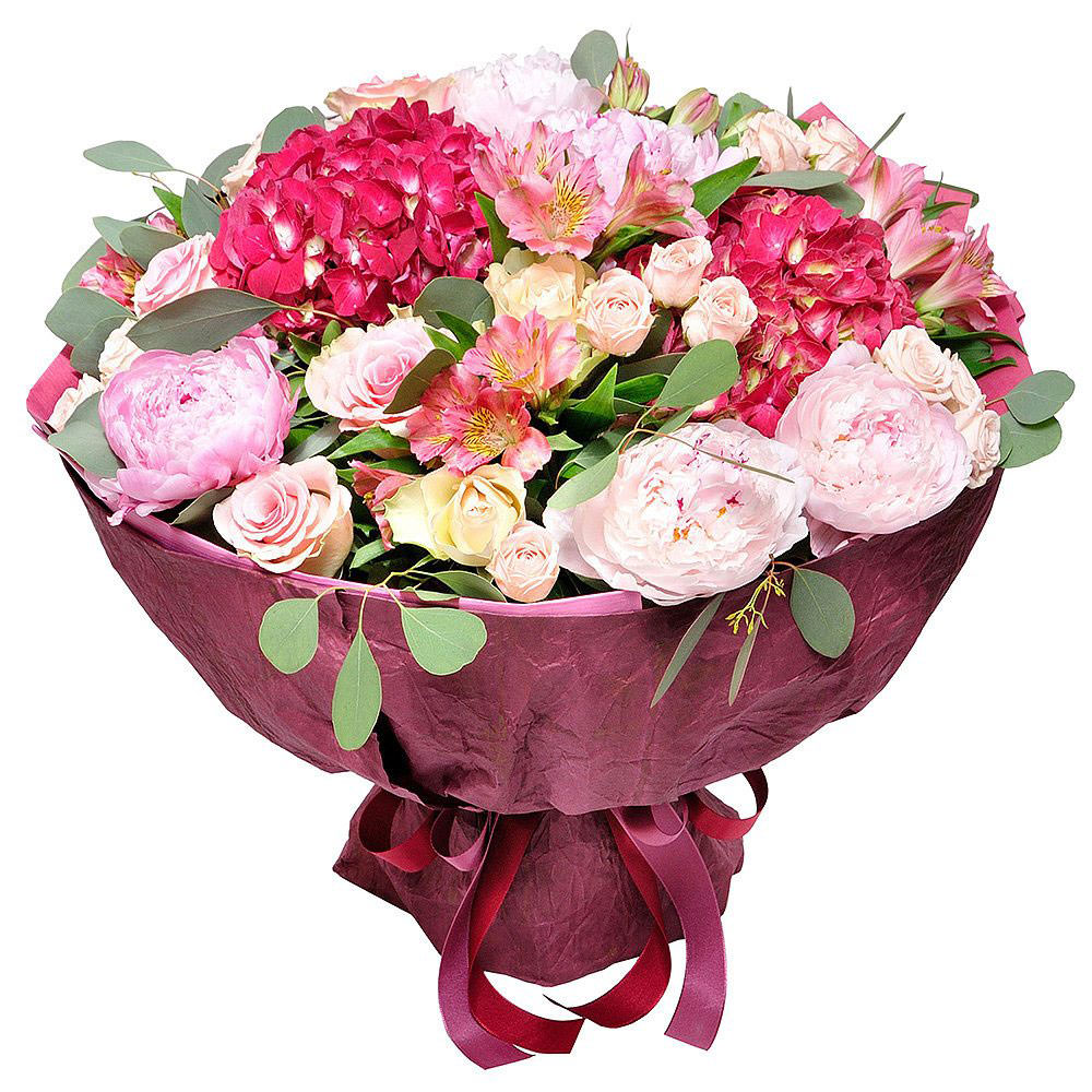 На фото представлен образец. Объем букета зависит от выбранного вами размера. Точное количество цветов и цветовую гамму вы можете уточнить у менеджера по телефону.