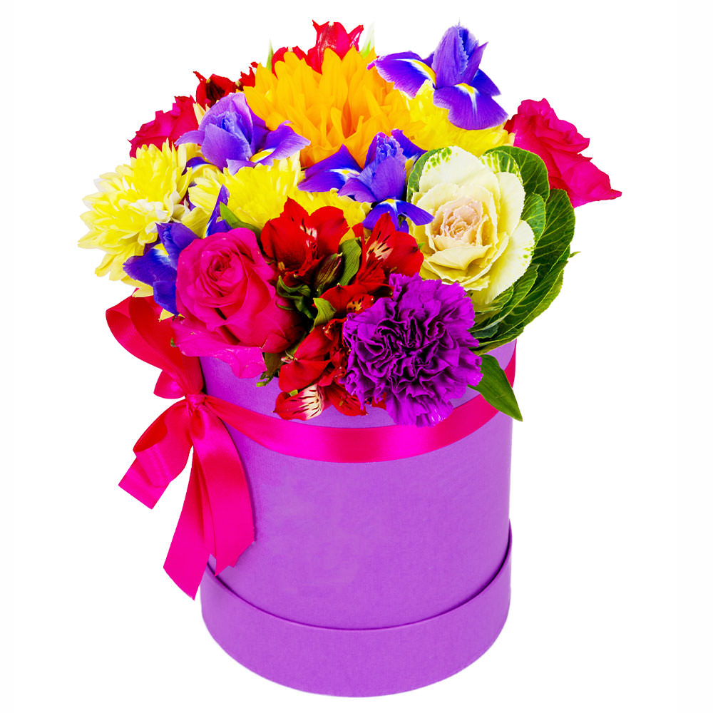 На фото представлен образец. Объем коробки зависит от выбранного вами размера. Точное количество цветов и цветовую гамму вы можете уточнить у менеджера по телефону.