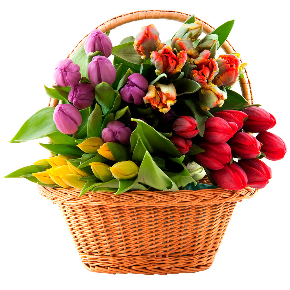 Цветы в корзинке «Микс тюльпанов»
